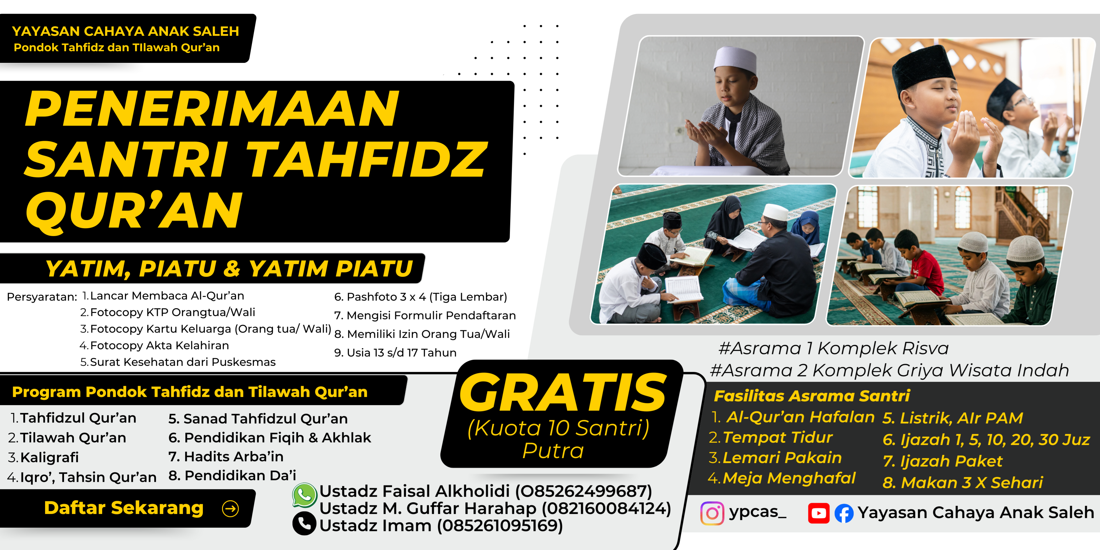 Yayasan Cahaya Anak Saleh Buka Penerimaan Santri Tahfidz Quran Gratis untuk Yatim dan Piatu